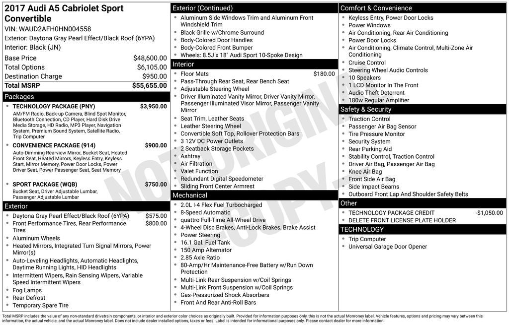 - Vehicle Name: Audi A5 Cabriolet
