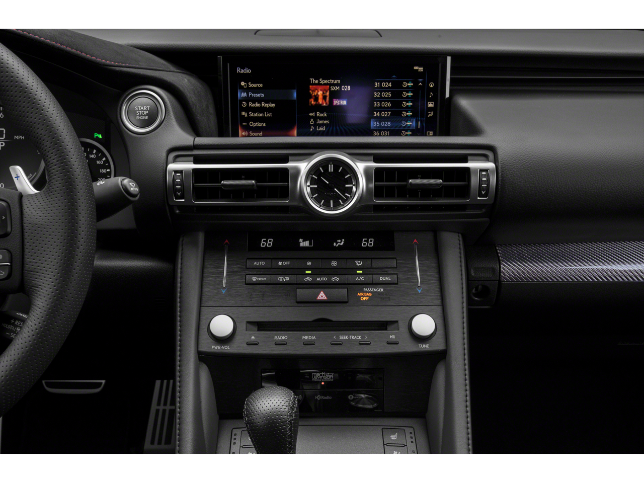 - Radio: AM/FM/In-Dash CD Lexus Display Audio -inc: 7-inch VGA screen, navigation system, 10 speakers, 256-watts, digital signal processing w/Automatic Sound Levelizer (ASL), HD Radio (complimentary traffic and weather), integrated SiriusXM satellite radio receiver (complimentary 90-day trial subscription included), iTunes tagging, rear glass-imprinted radio antenna w/separate FM diversity antenna, Scout GPS Link (three year trial), streaming audio via Bluetooth® 3.0 and Siri Eyes Free (iPhone 4S and newer)