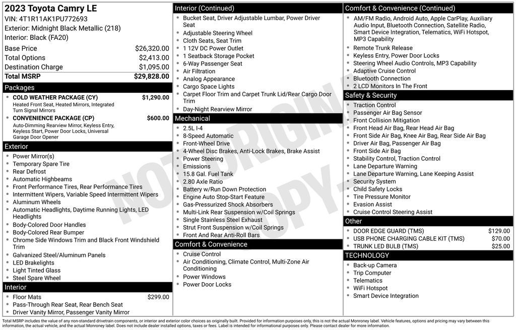 - Dealer Processing Charge +$799