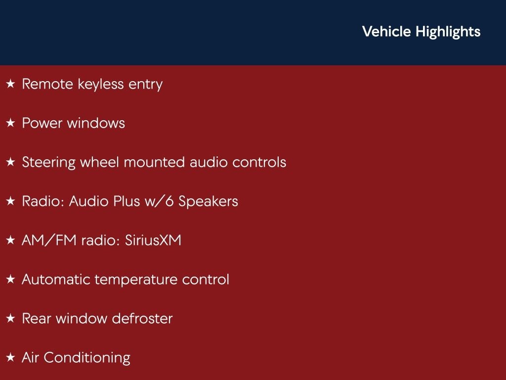 - Complimentary 3-months SirusXM Trial on equipped vehicles