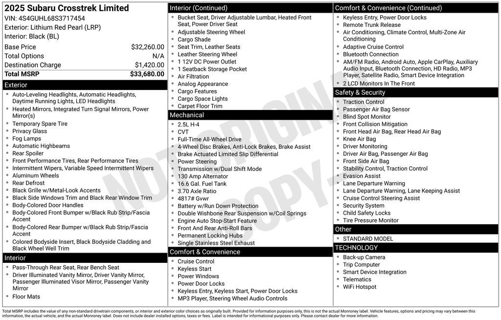 - Vehicle Name: Subaru Crosstrek